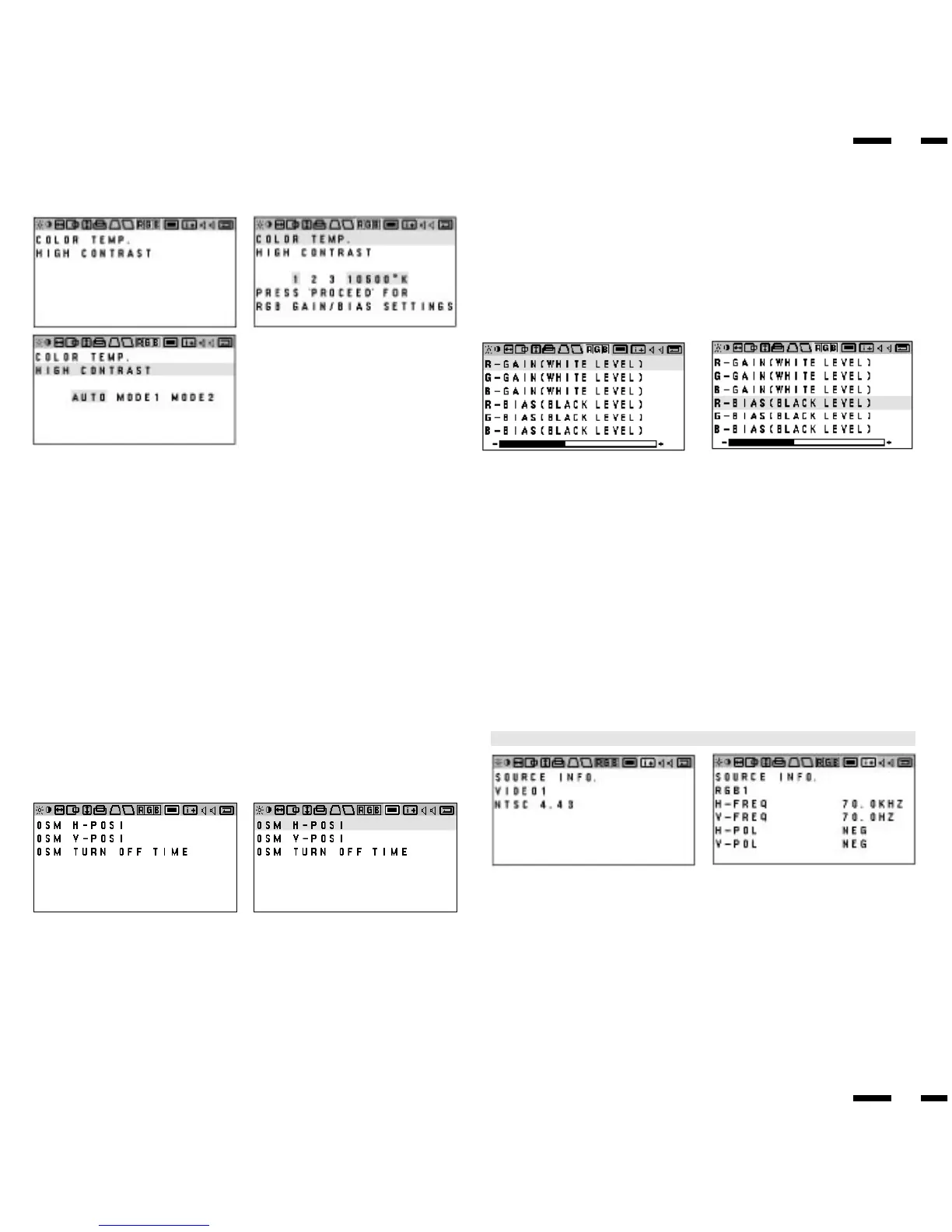 R, G, B-BIAS : Pressing + or - increases or decreases the bias level for each