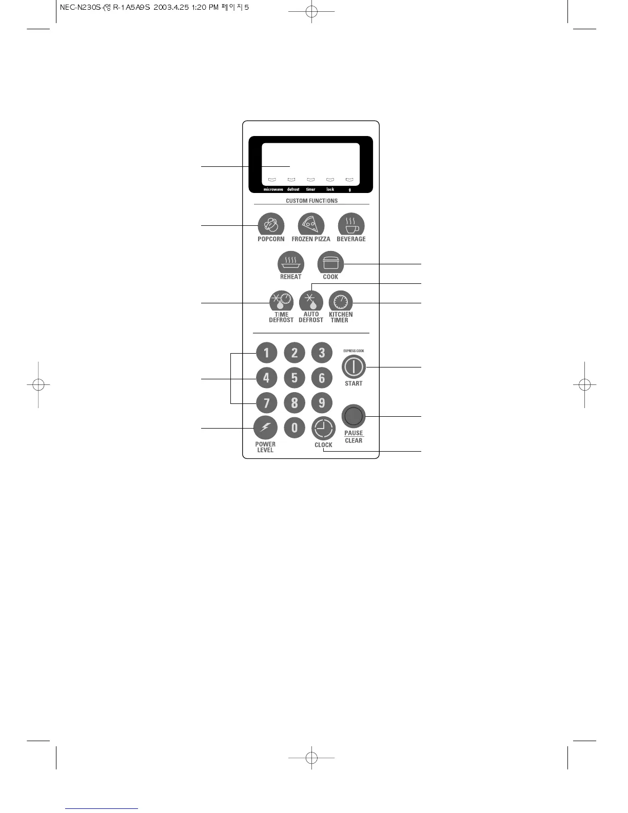 0 Time set pad - Used to set the cooking