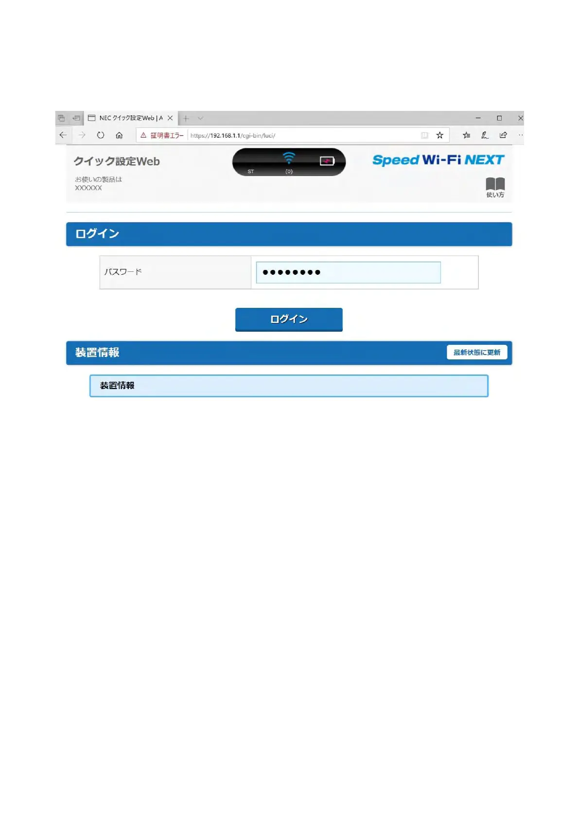 (2) Enter the password and click “ログイン”.