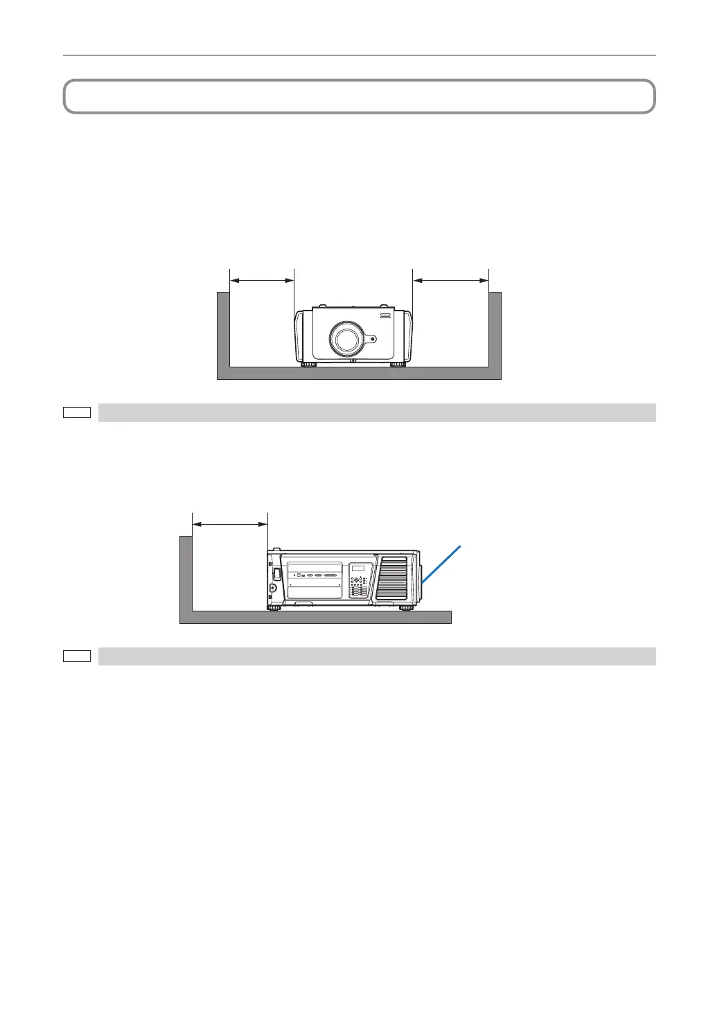 Achten Sie auf ausreichenden Freiraum zwischen dem Projektor und seiner Umgebung, wie unten gezeigt.