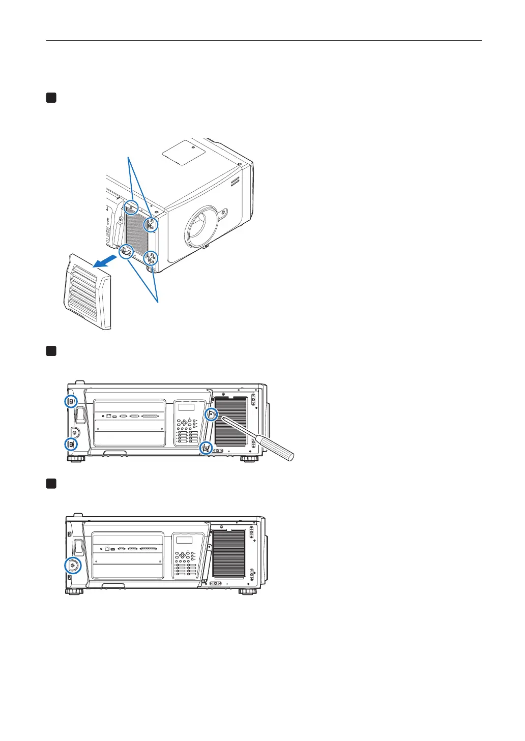 Loosen four screws on the side cover until they are free to spin. The screws do not detach from the cover.