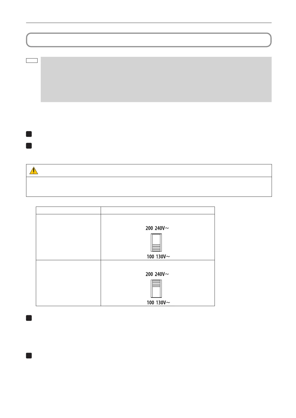 and set the VOLTAGE SELECT switch properly. If the selection or setting is wrong, it may cause fires, or damage to the