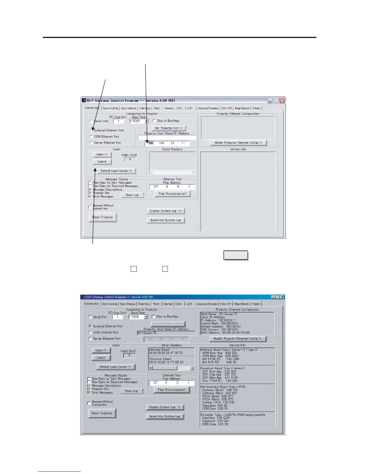 (When connection is successful, “Log In” is displayed in “Version Info”.)