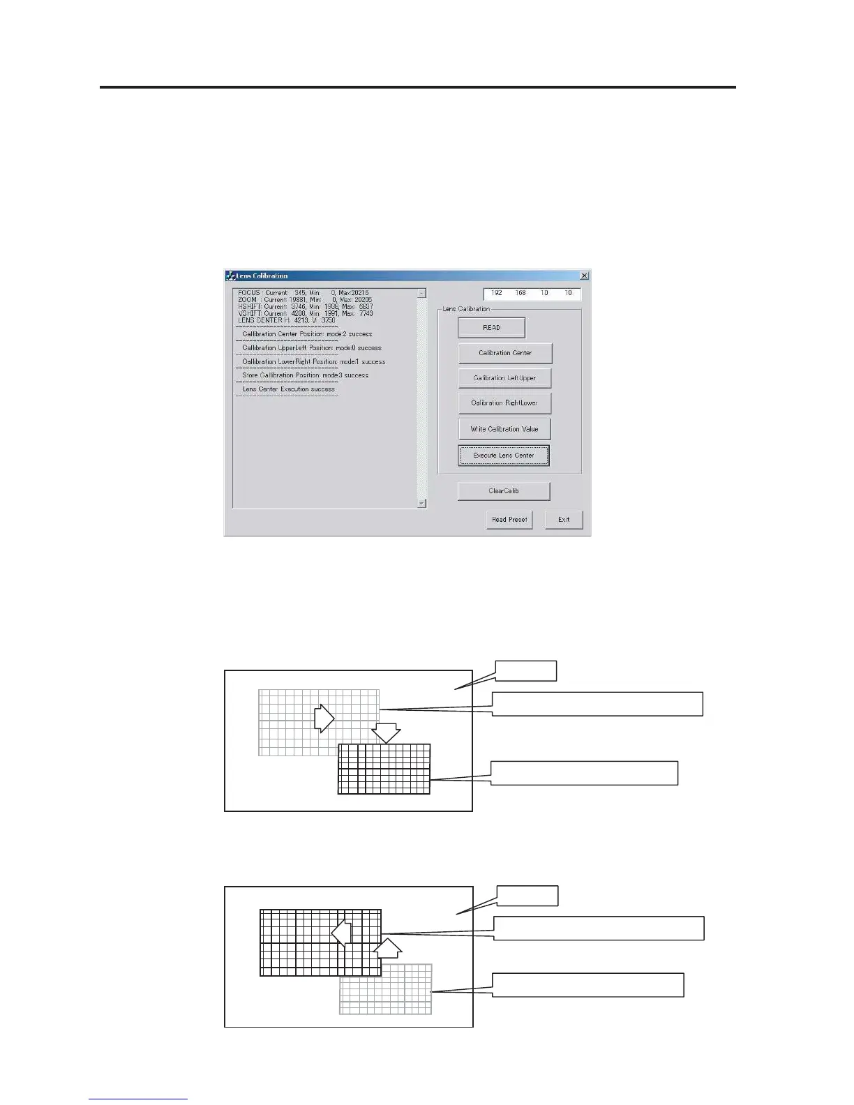 Execute "Lens Center" and confirm that the image center is returned to the screen center.