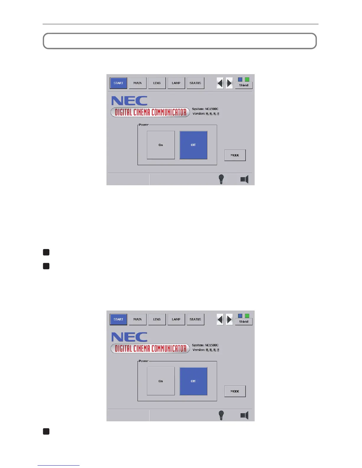 Preparation: Check that there is AC power being supplied to the lamp power unit (only on the NC2500 series) and the projector