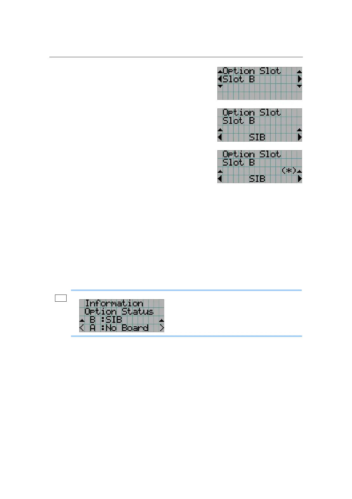 Settings of slot A and slot B can be confirmed at projector’s [Information]-[Option Status]