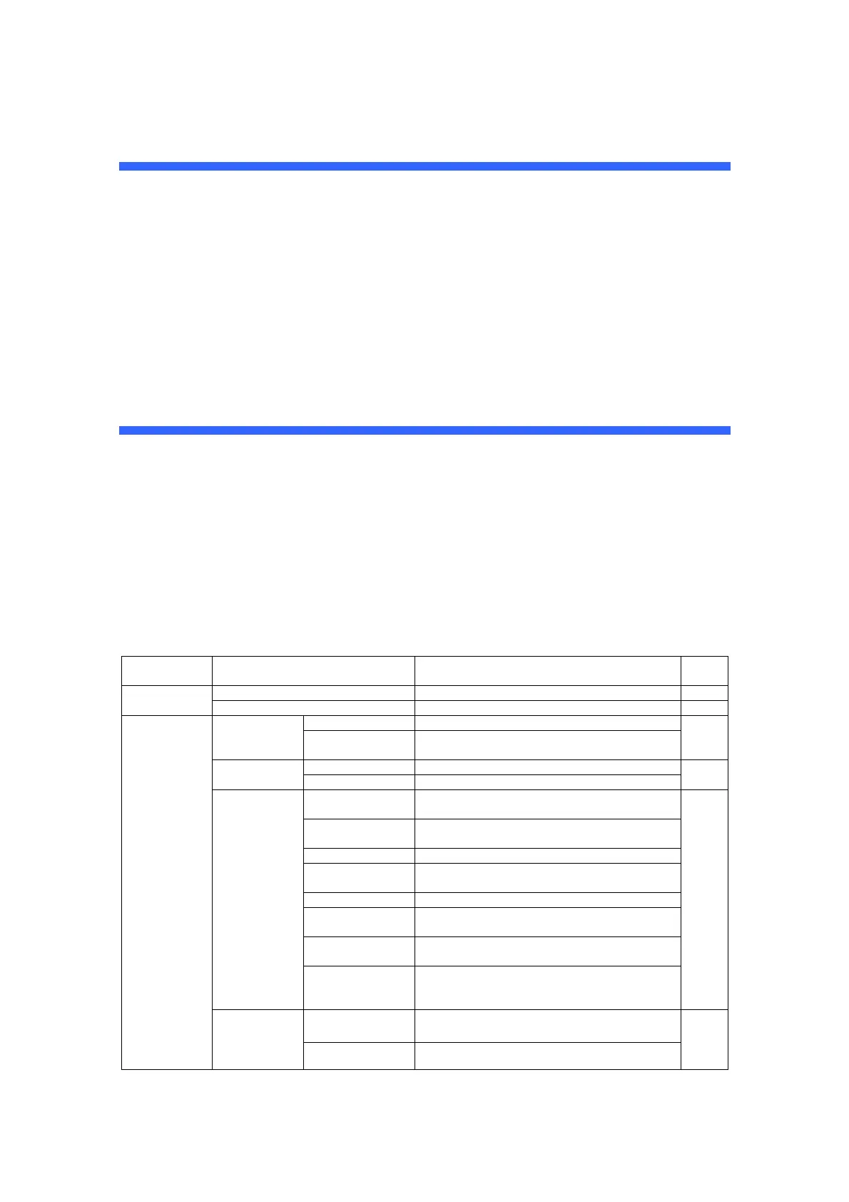 Main menu Submenu Description