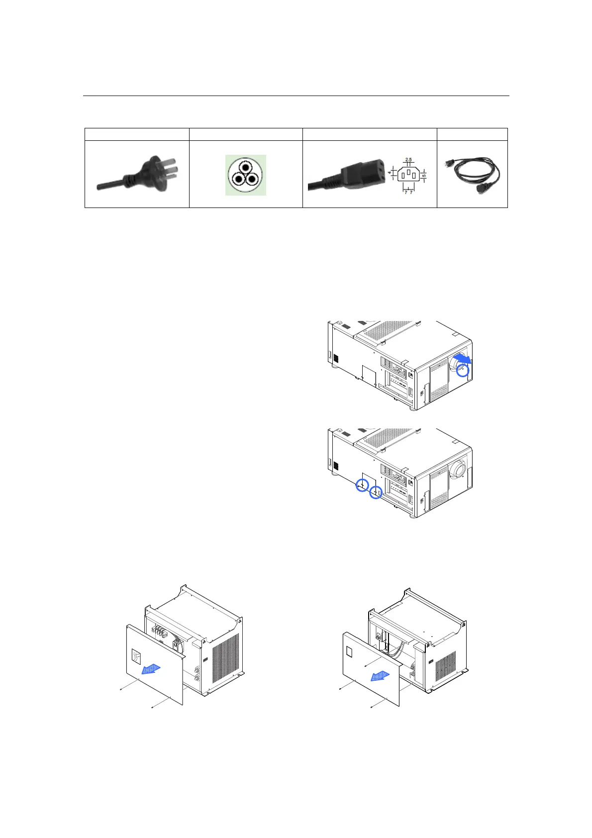 To connect the power cable, remove the covers of the projector and the lamp power supply