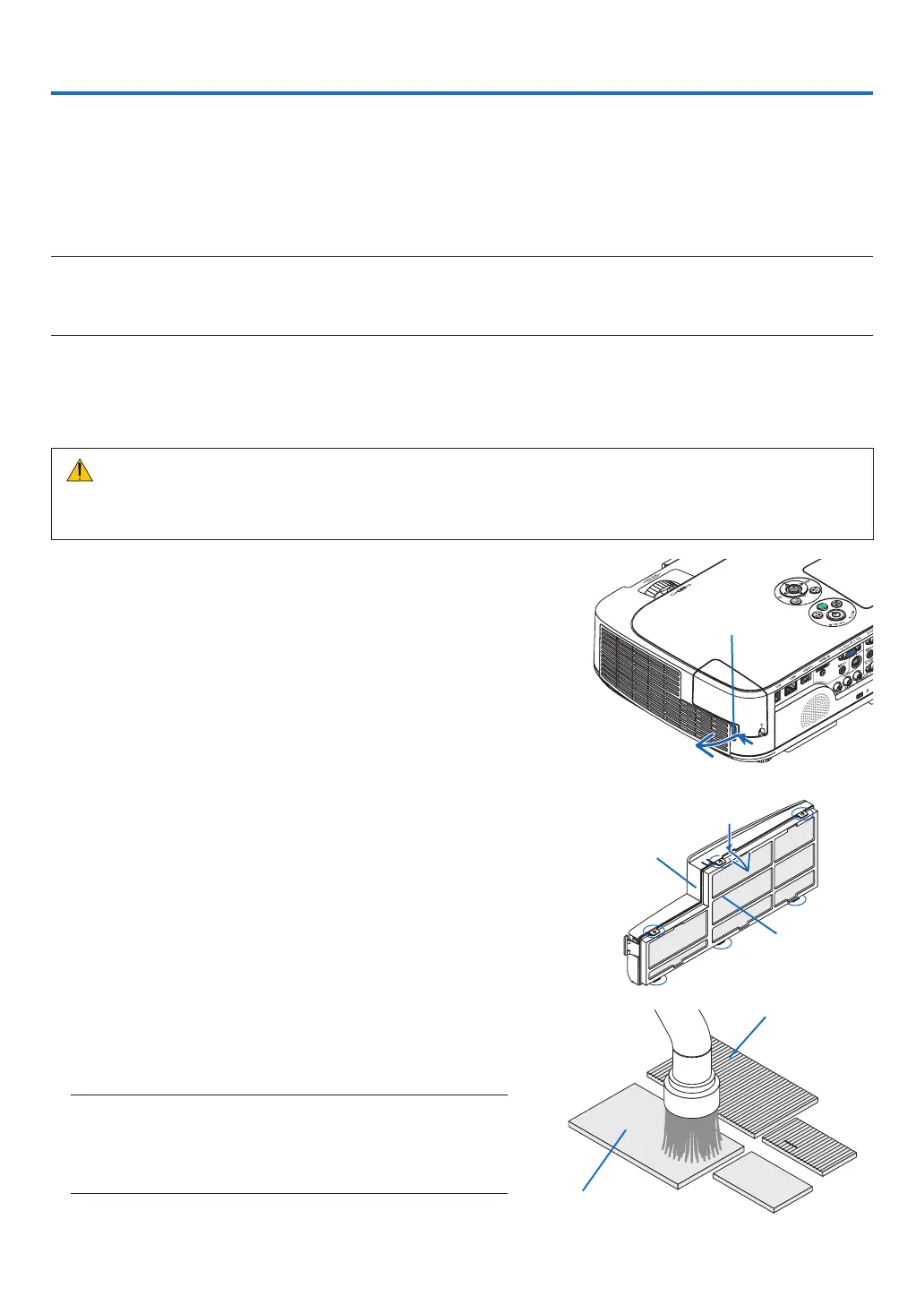 • Beforecleaningthelters,turnofftheprojector,disconnectthepowercordandthenallowthecabinettocool.