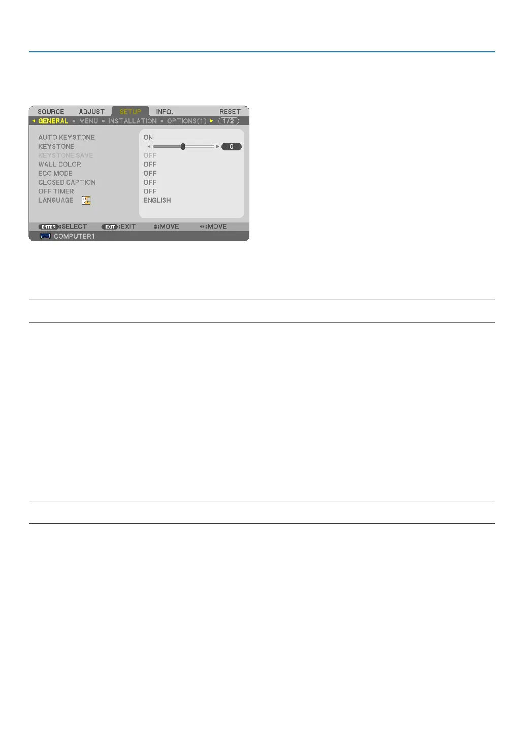 TIP:Whenthisoptionishighlighted,pressingtheENTERbuttonwilldisplayitsslidebarforadjustment.