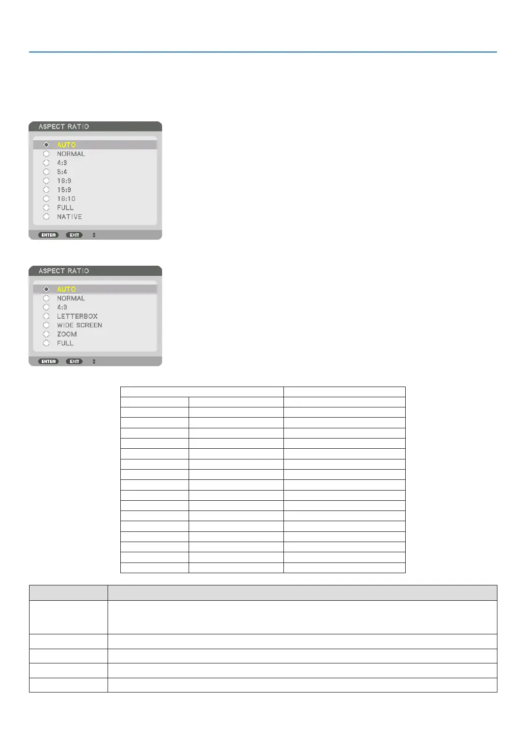 Theprojectormayerroneouslydeterminetheaspectratiodependingonitssignal.Ifthisoccurs,select