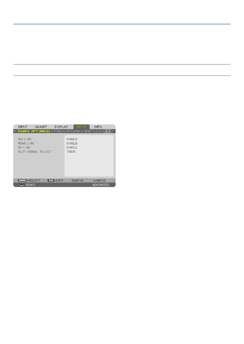 SINGLE .................. Set the SDI1 input and SDI2 input and SDI3 input and SDI4 input to the respective single link (one input