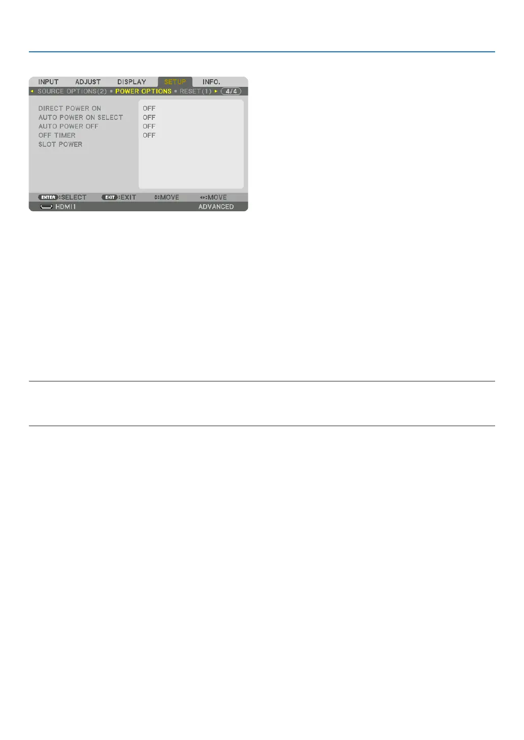 • IfyouwanttoactivatethisAUTOPOWERONSELECTfunctionafterpoweringOFFtheprojector,interruptsignalfrominput