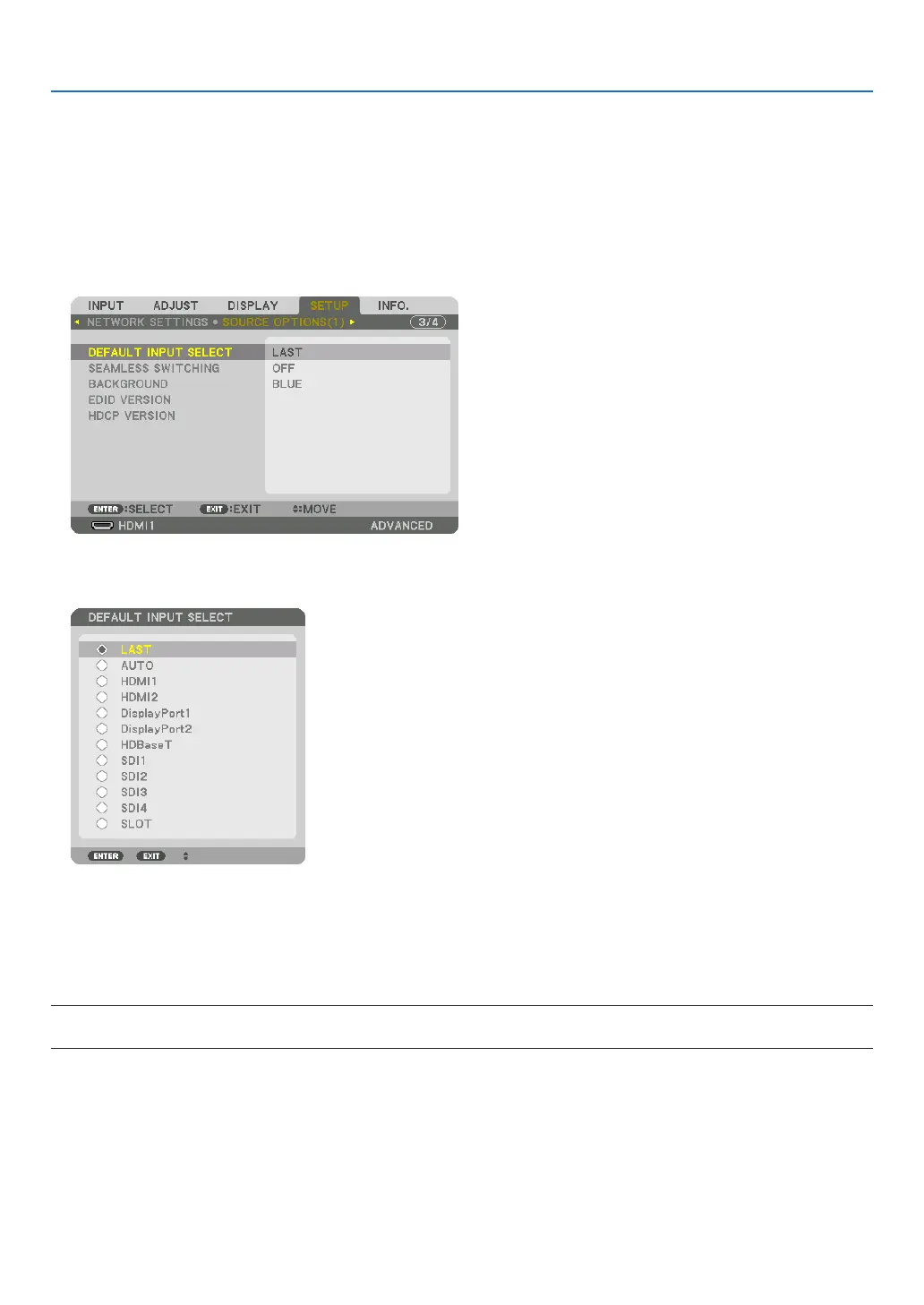 4. Press the ▼buttontoselect[DEFAULTINPUTSELECT]andpresstheENTERbutton.