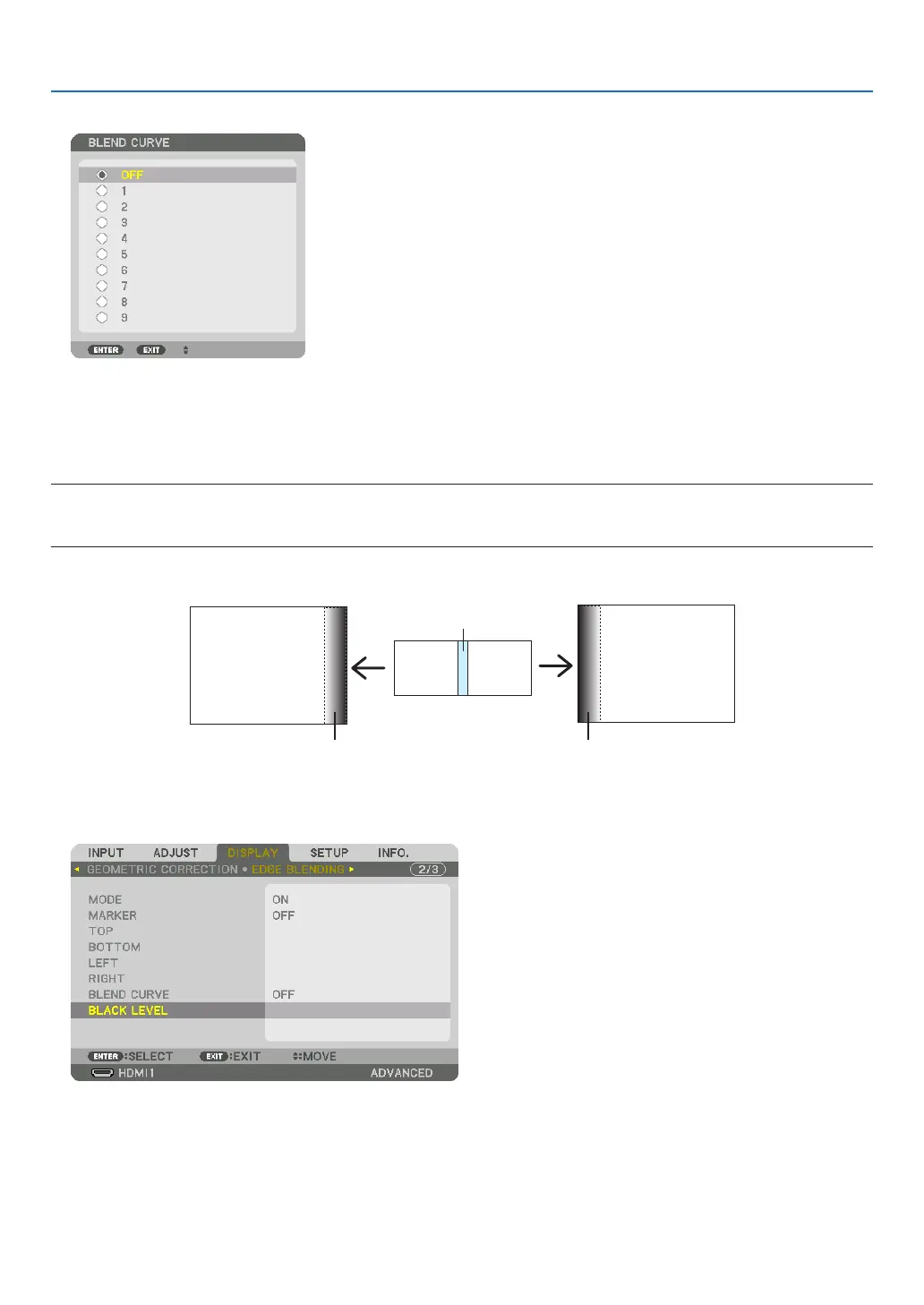 Thisadjuststheblackleveloftheoverlappingareaandthenon-overlappingareaofthemulti-screen(EDGEBLENDING).