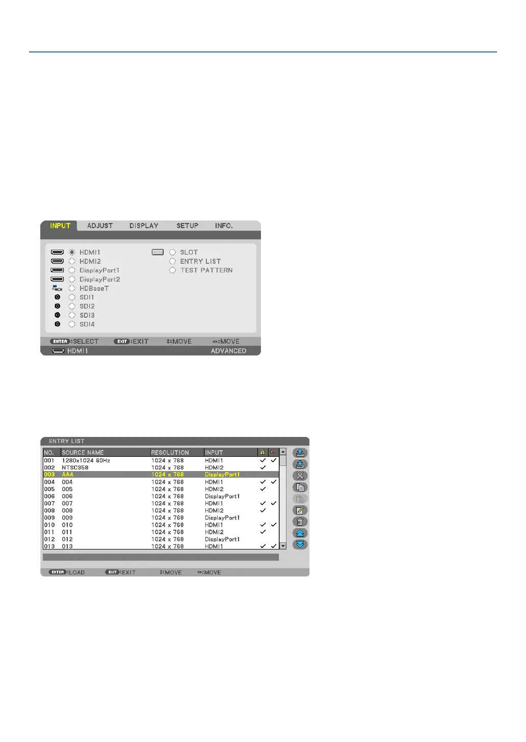 3. Use the ◀, ▶, ▲, or ▼toselect[ENTRYLIST]andpresstheENTERbutton.