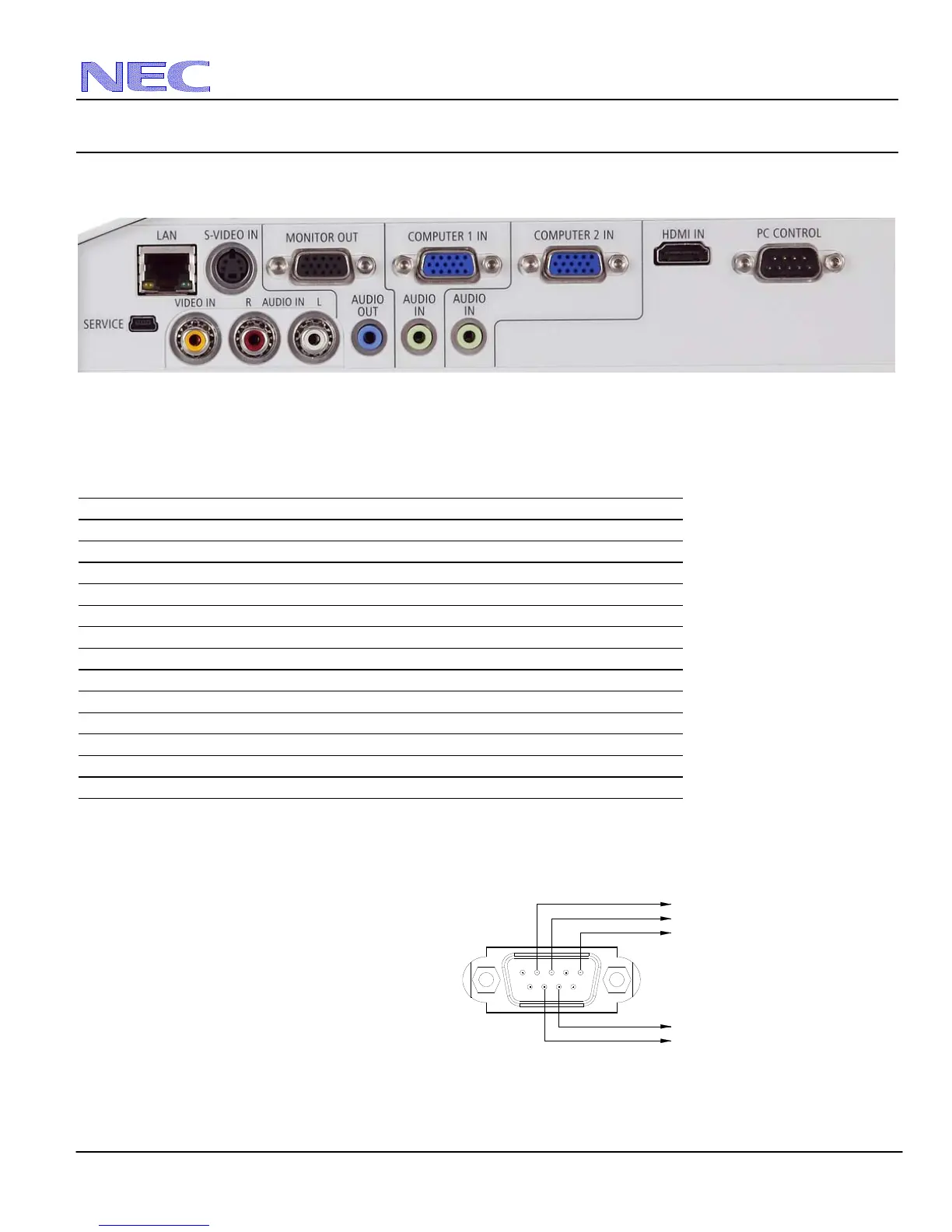NOTE 2: Pins 2, 3, 5, 6 and 8 are used inside the projector.