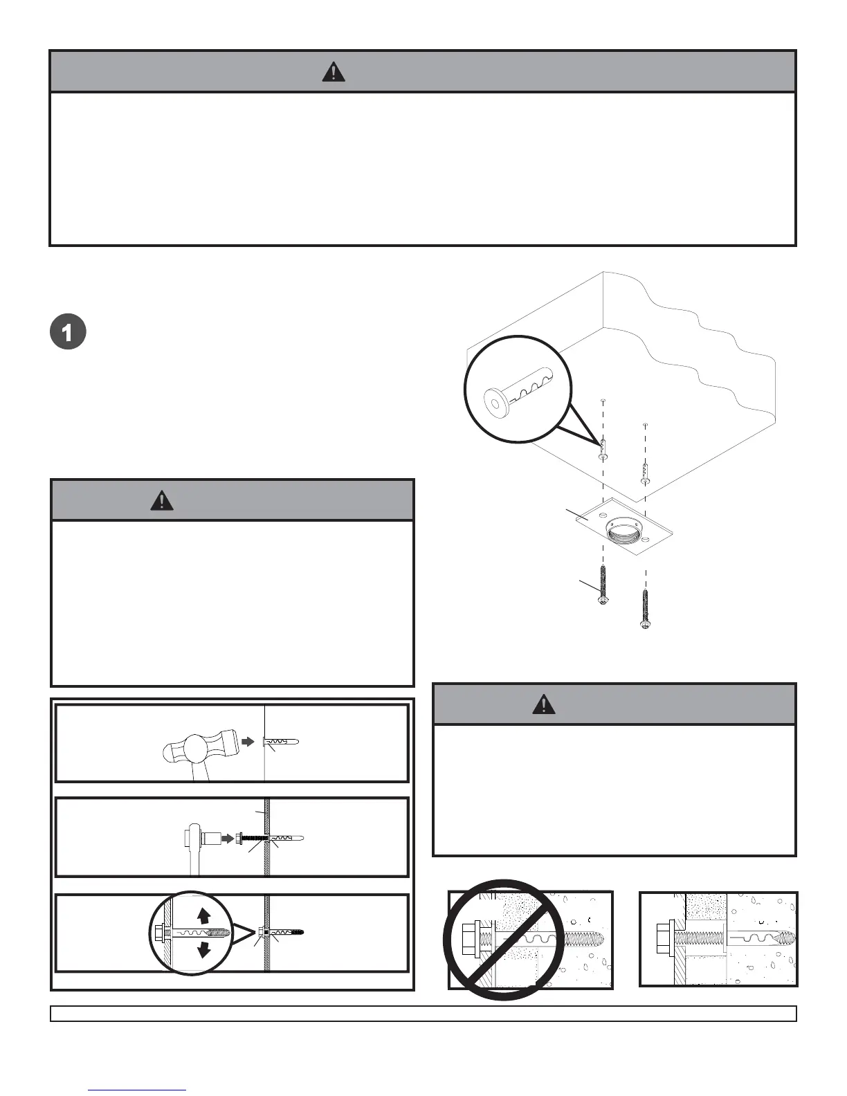 • Make sure that mounting screws are anchored into the