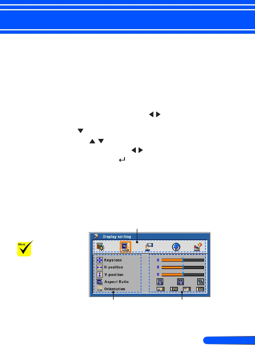 6. To exit, press “Menu”again. The OSD will be closed and the projec-