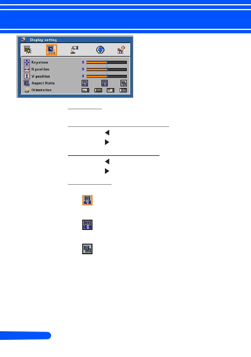Adjust image distortion caused by tilting projector. (±40 degrees).