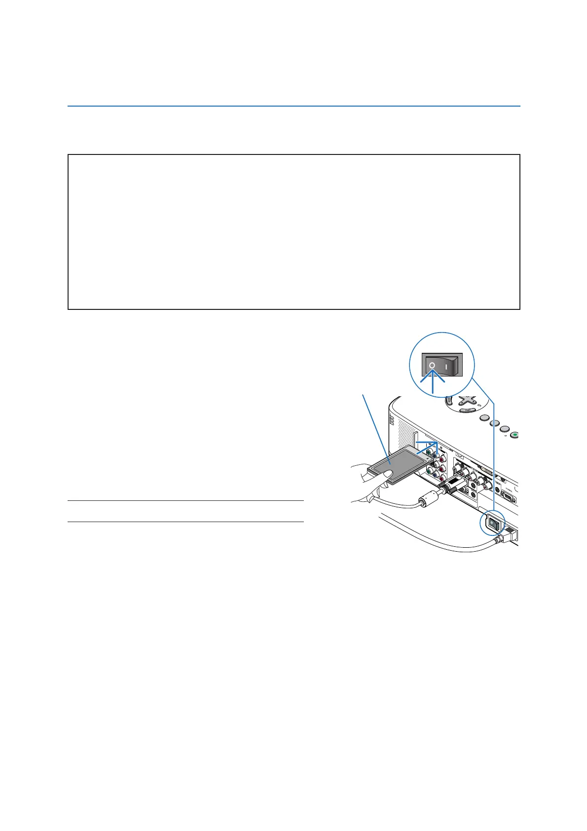projector malfunction or damage to the wireless LAN card. If the projector will not work correctly, turn off the
