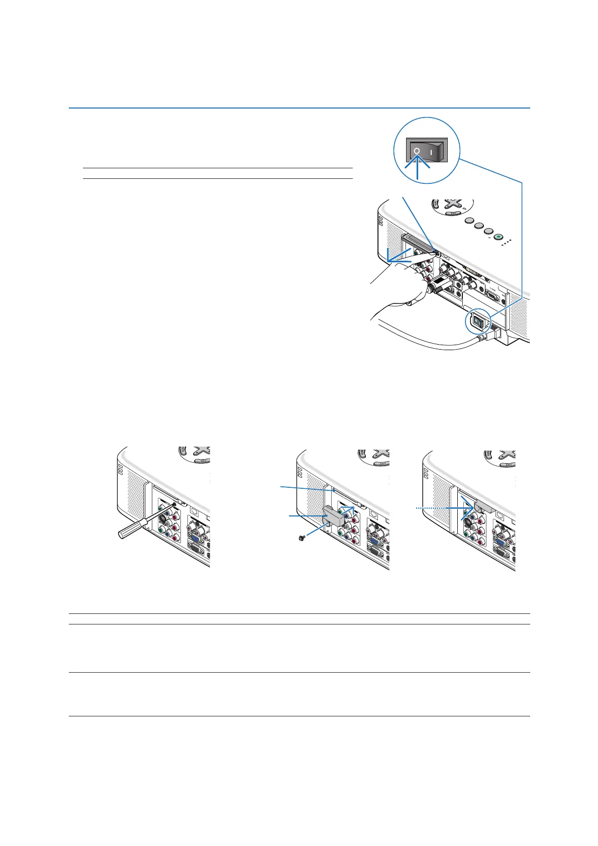 The screw for the PC card lock is mounted under the PC card slot on the rear side of the projector. To attach the PC
