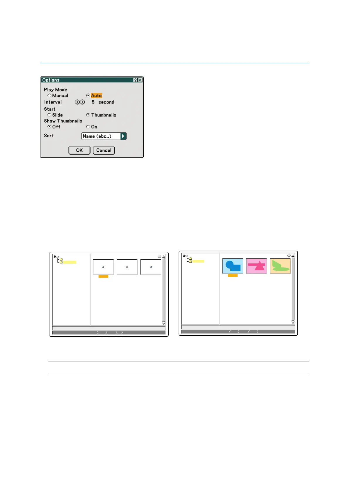 Auto ...................... Plays back slides automatically when the Viewer source is selected.
