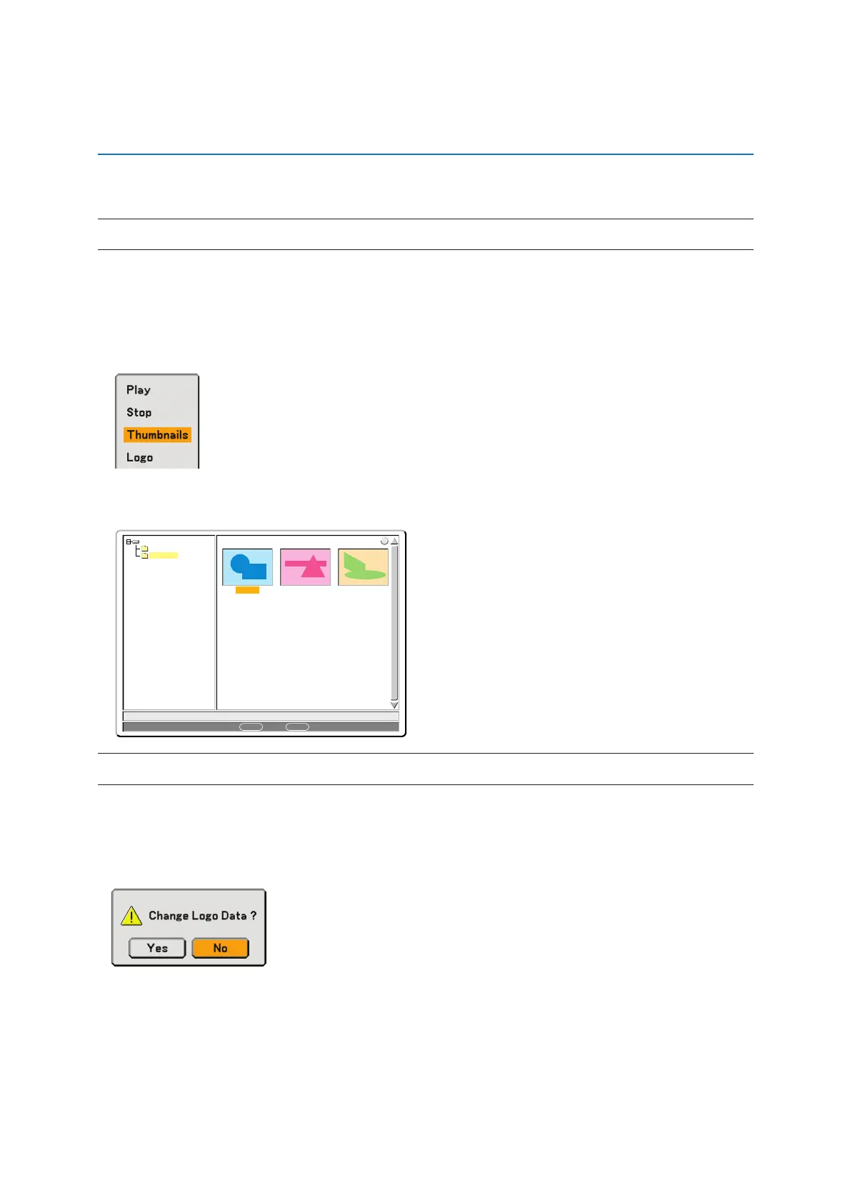 button to select [Yes] and press the ENTER button. This completes changing a logo for the