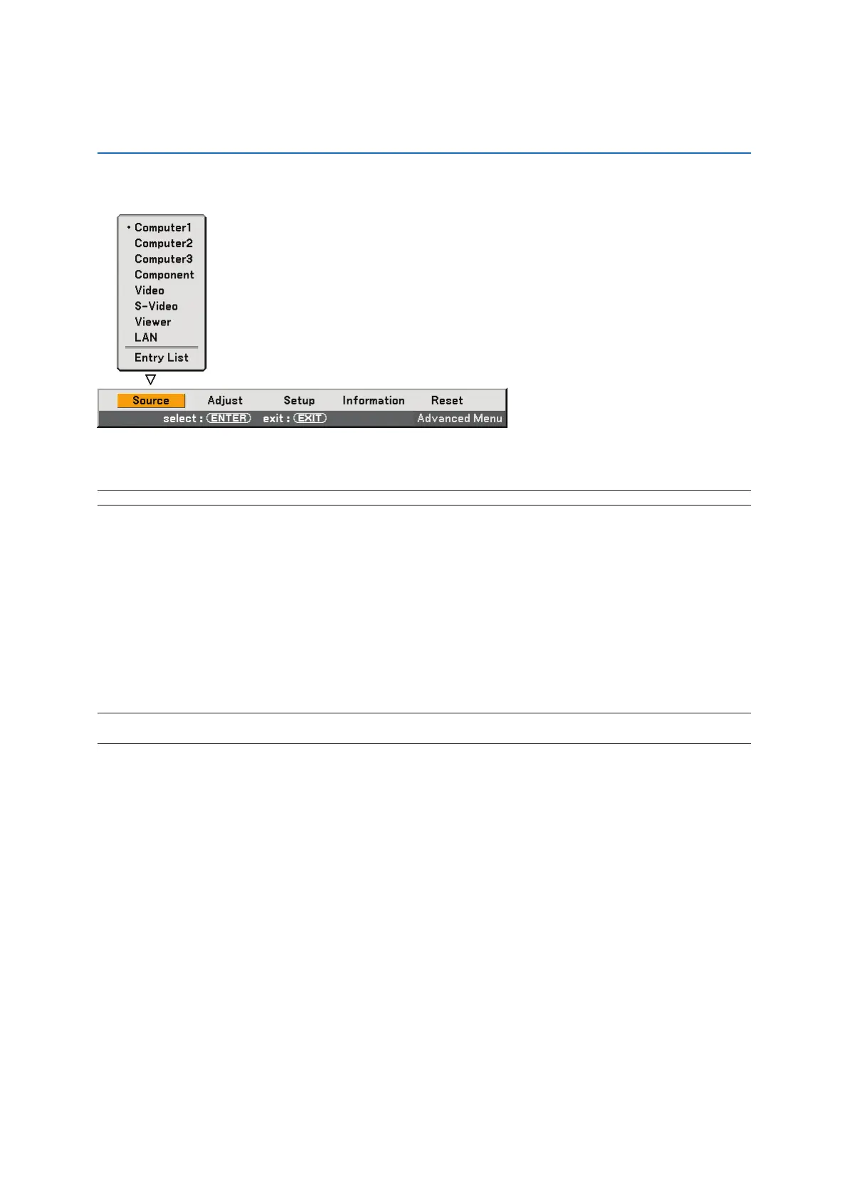 Selects what is connected to your VIDEO input-VCR, laser disc player, DVD player or document camera.