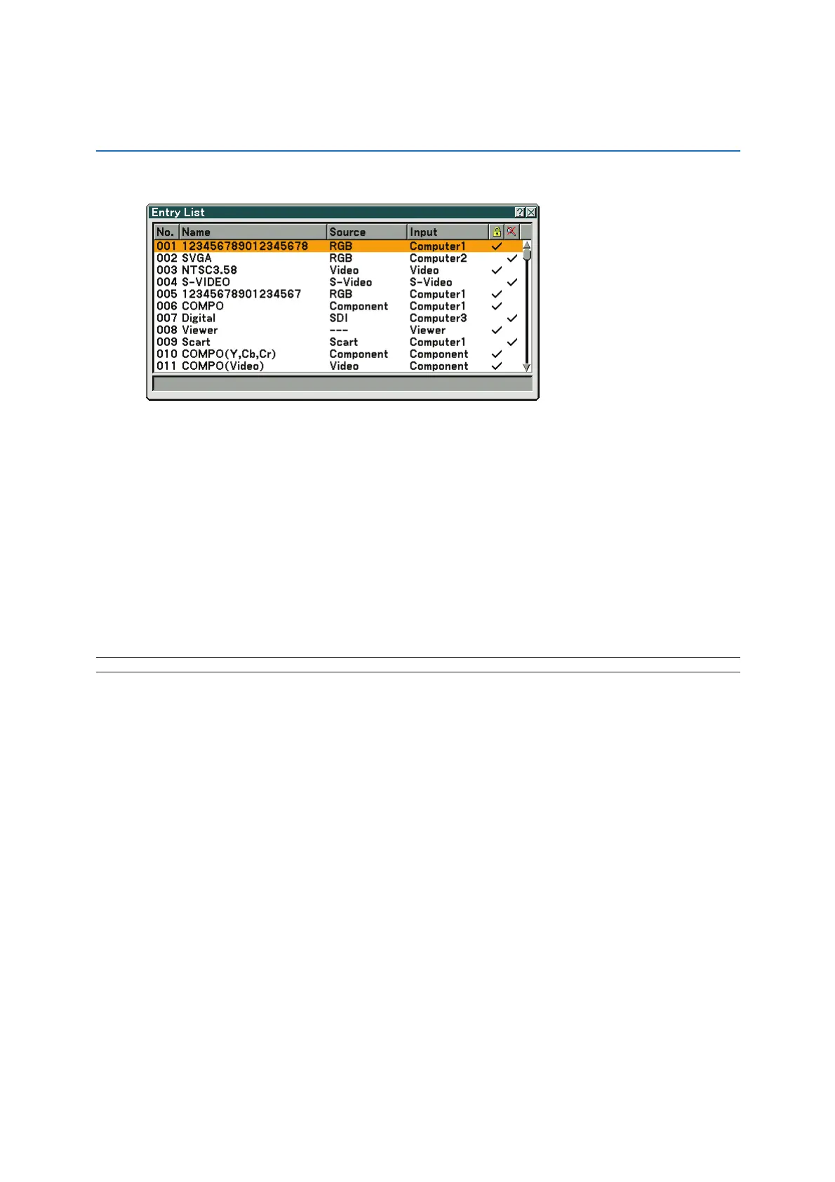 press the ENTER button on the remote control or the projector cabinet to display the [Entry Edit Com-