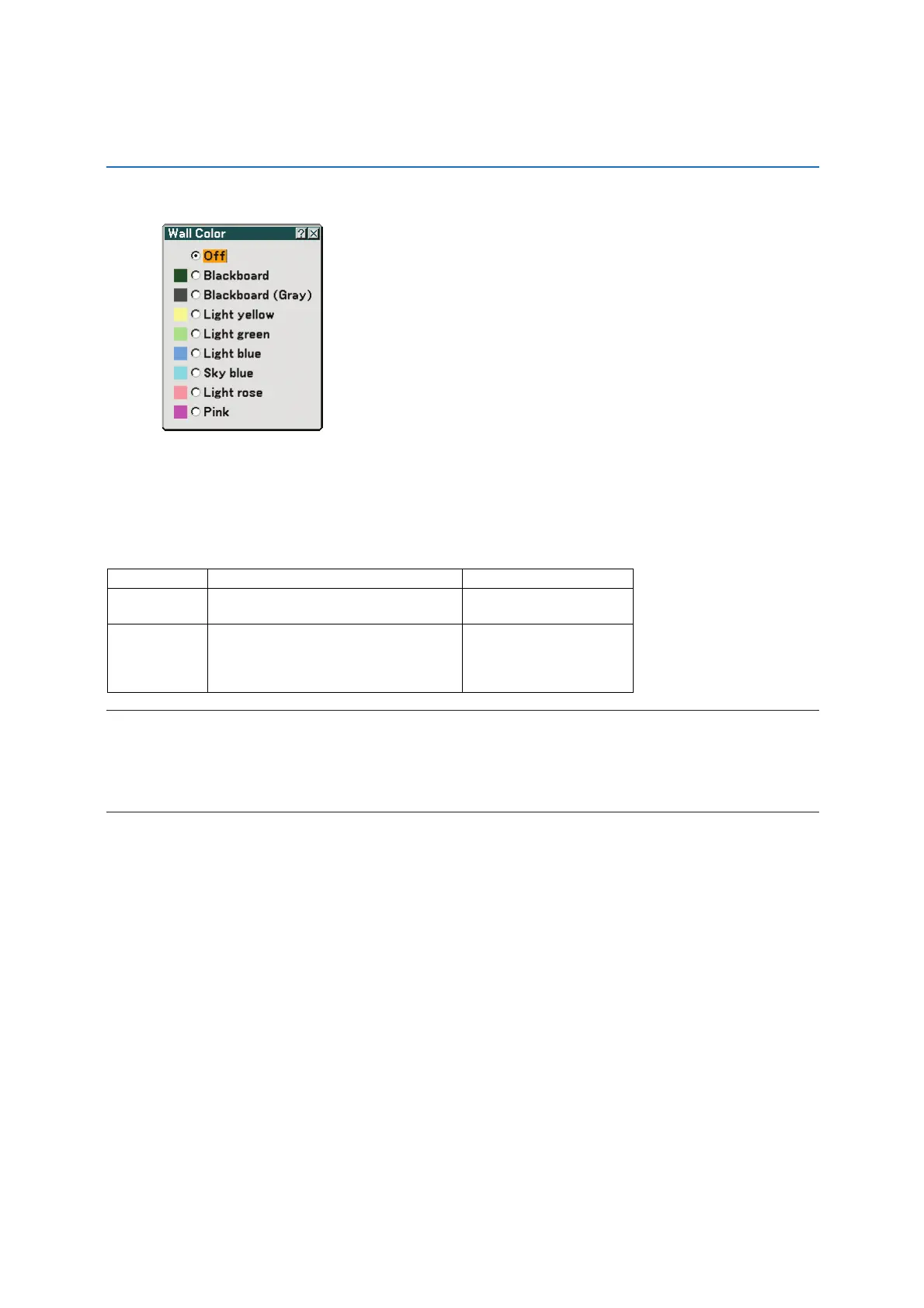 This function allows for quick adaptive color correction in applications where the screen material is not white.