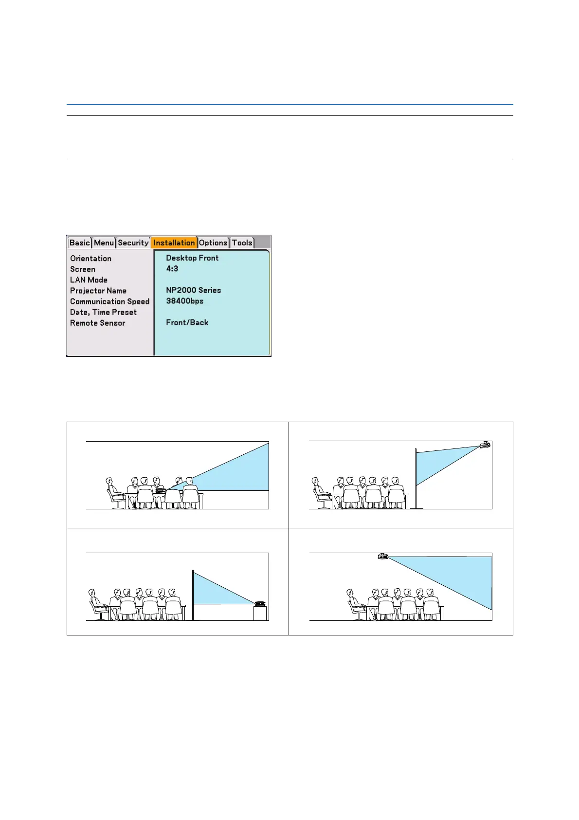 Selecting Projector Orientation [Orientation]