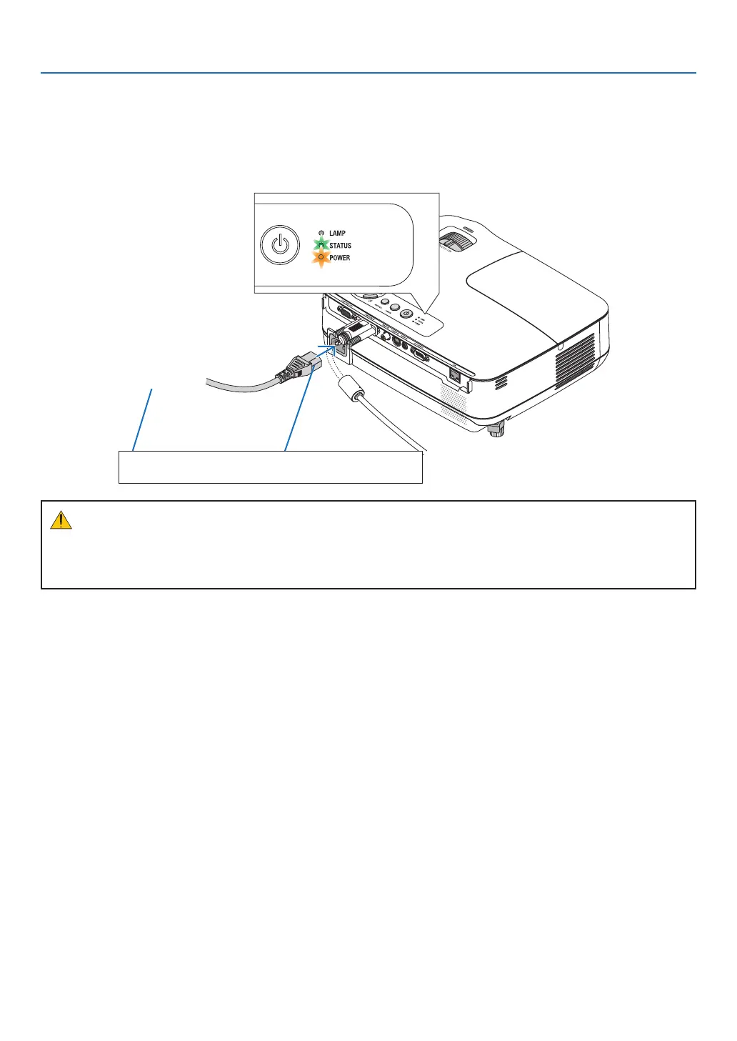 of the supplied power cable in the wall outlet.