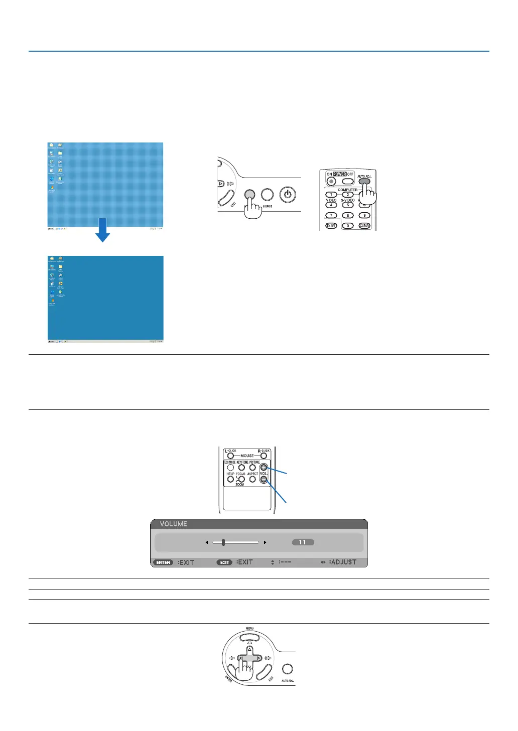 • IftheAutoAdjustoperationcannotoptimizethecomputersignal,trytoadjust[HORIZONTAL],[VERTICAL],[CLOCK],and[PHASE]