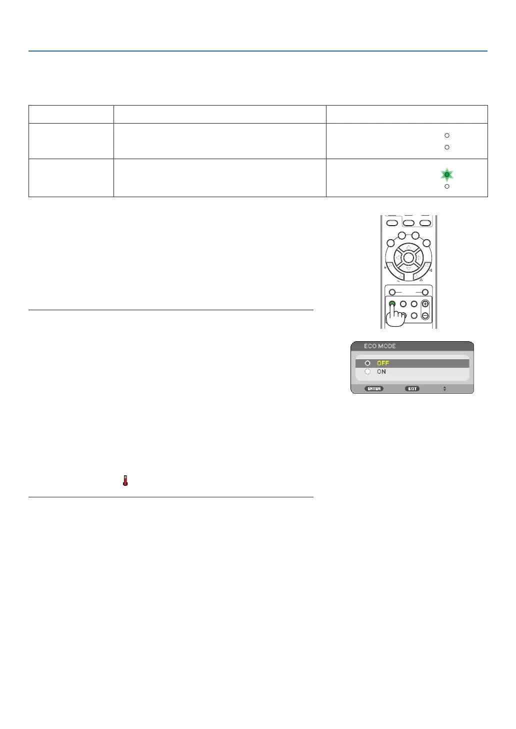 • Iftheprojectorisoverheatedin[OFF]mode,theremaybeacasewherethe[ECO