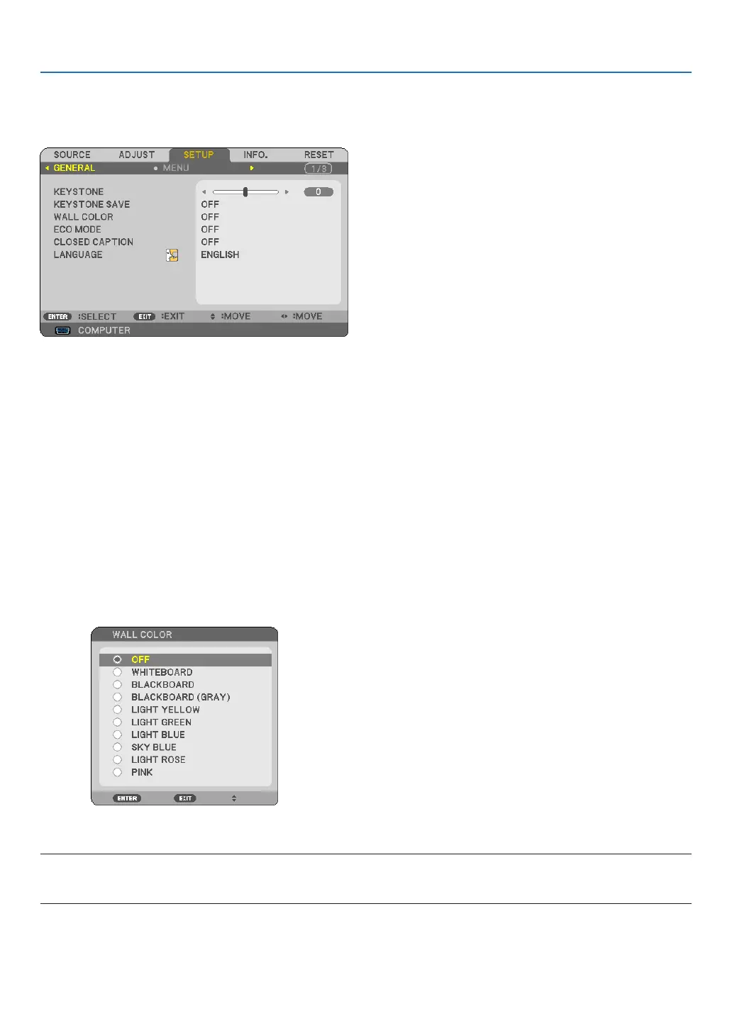 • Whenthe3Dmodeisenabled,the[WALLCOLOR]itemisnotavailable.
