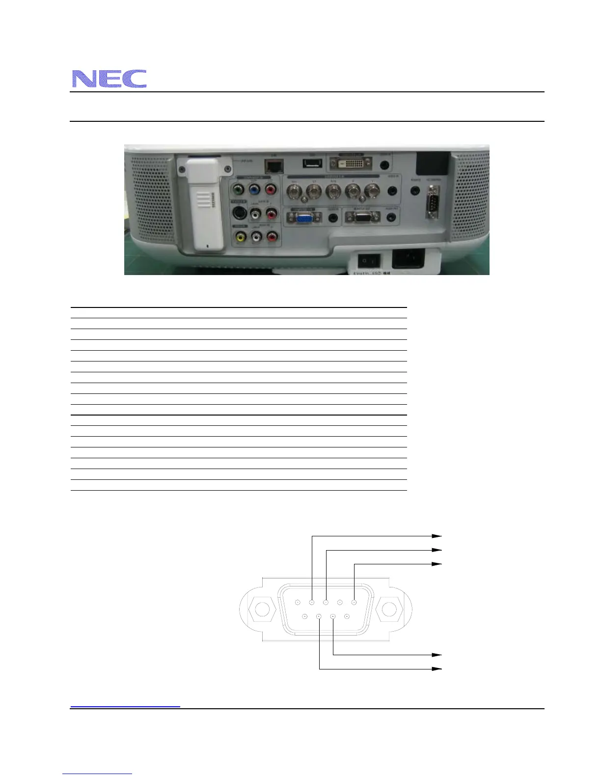 NOTE: Pins 1, 4, 6, and 9 are used inside the projector.