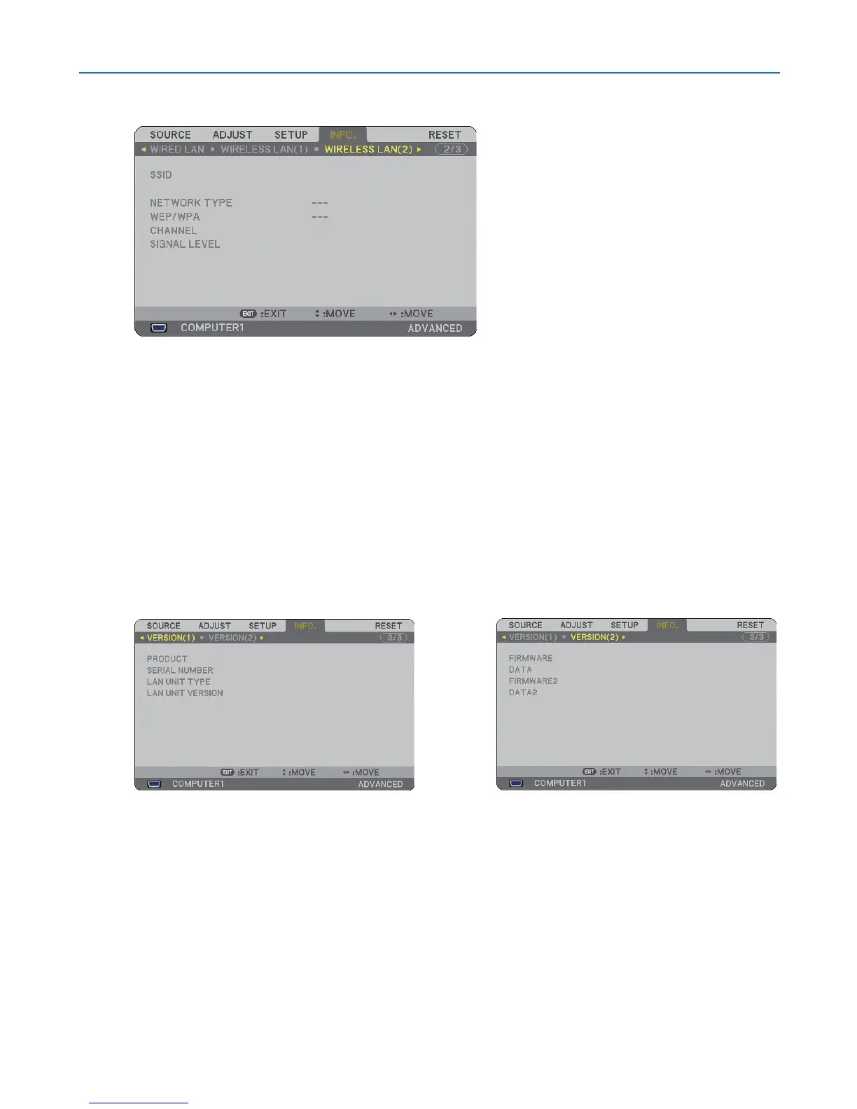 CHANNEL .............. Indicates the channel you selected in the [SITE SURVEY]. The channel must match for all wireless devices