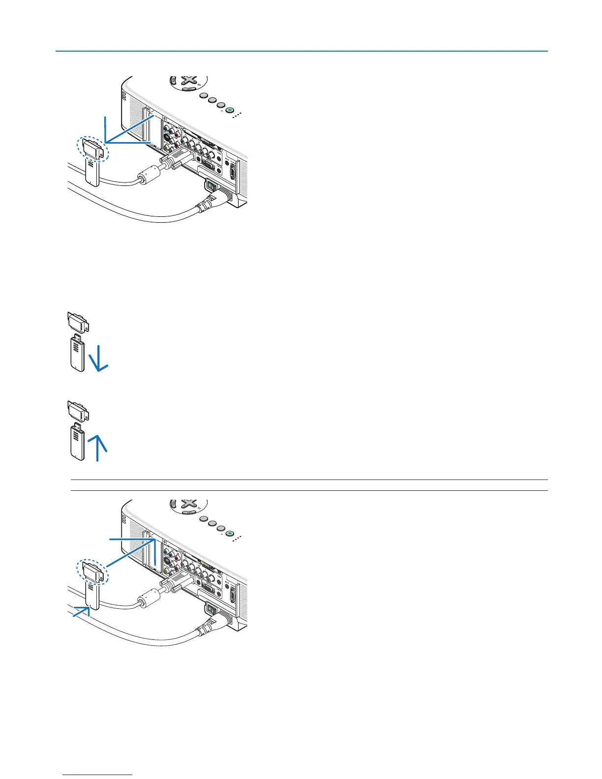 3. Insert the USB Wireless LAN Unit slowly into the USB port on the rear panel of the projector.