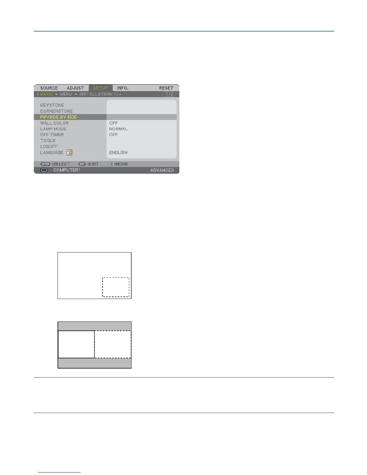 button to select [PIP] or [SIDE BY SIDE] and press the ENTER button.