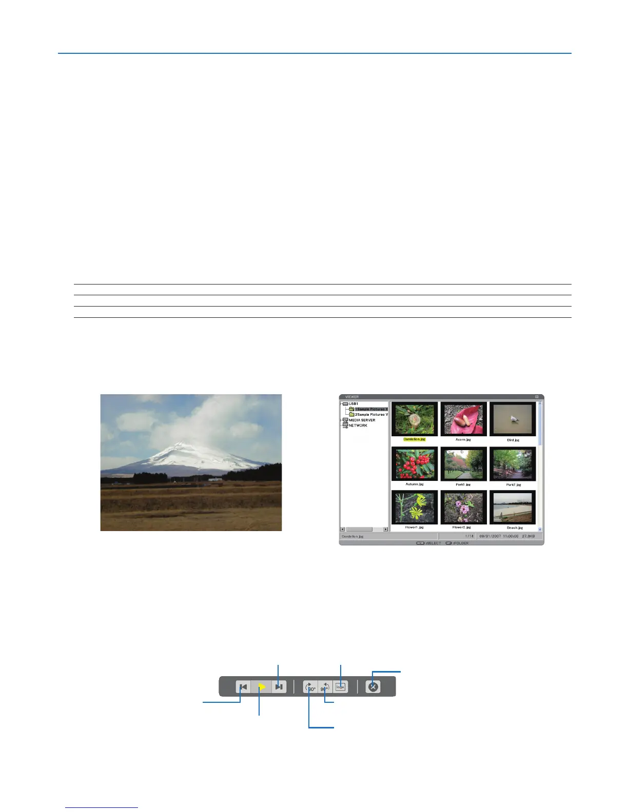 Pressing the MENU button during slide playback will display the control bar which allows you to operate a slide-