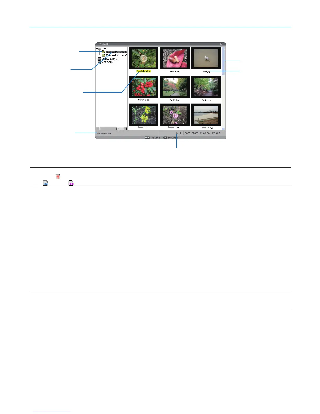 Thumbnail/file name .................Indicates thumbnails and names contained in a folder.