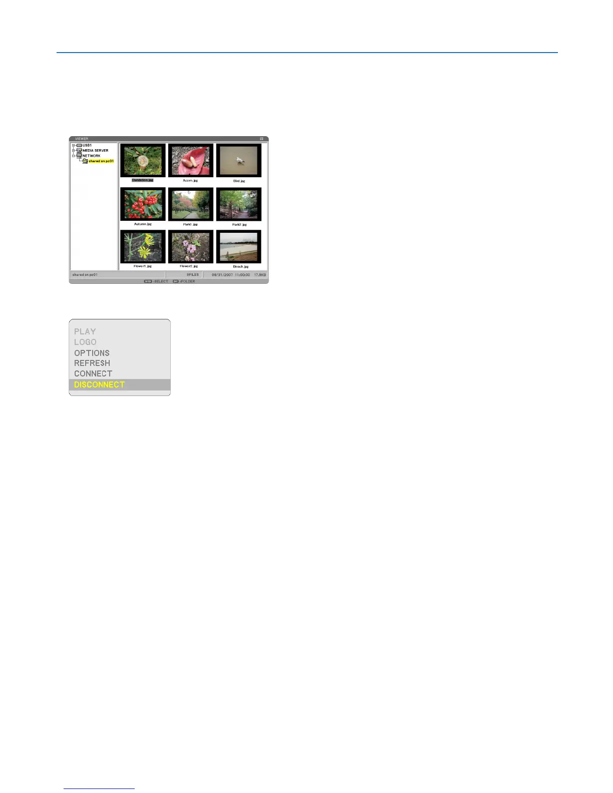 2. Select [DISCONNECT] from the thumbnail menu and press the ENTER button.