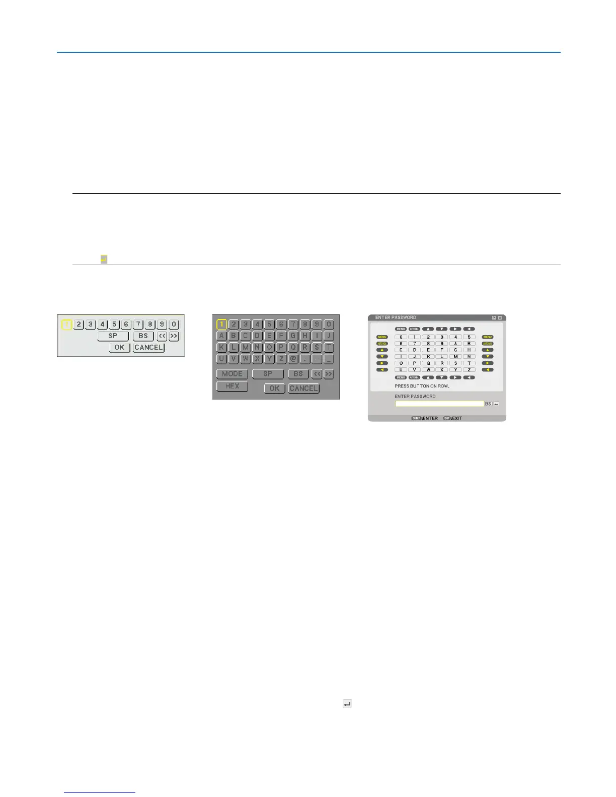 .............................. Use to type in password or keyword.