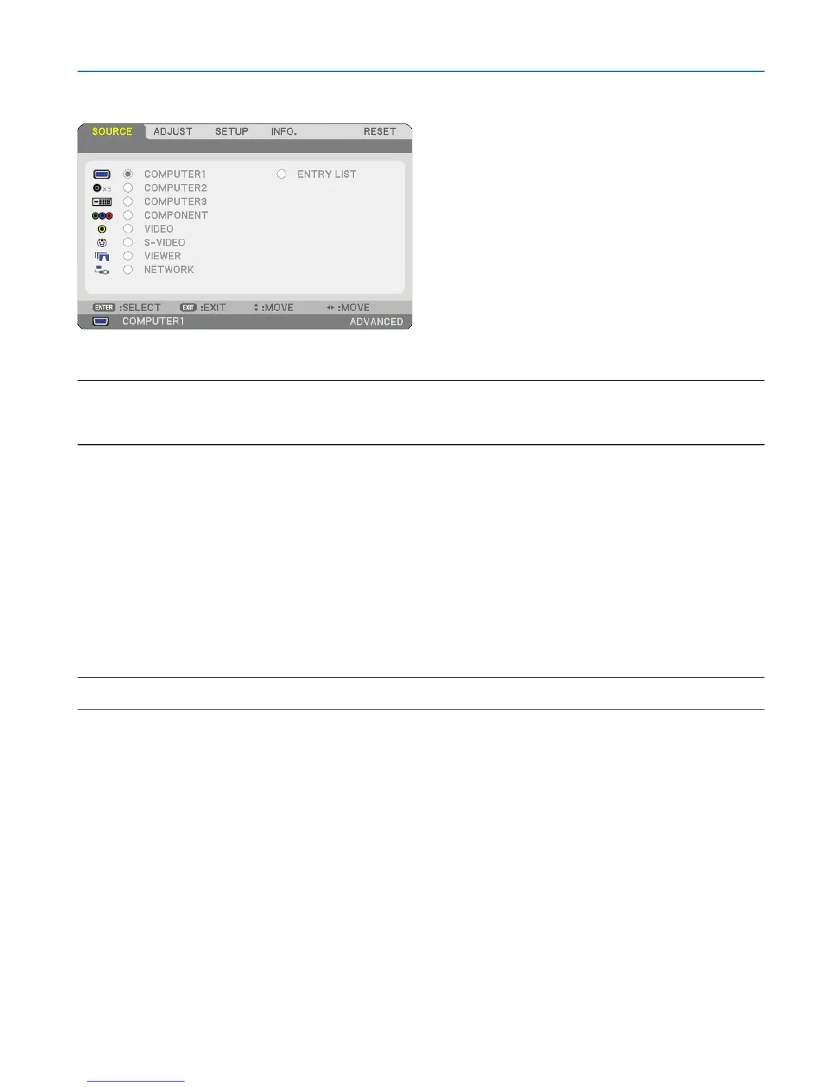 When a source connected on a network is not made settings, the [NETWORK] menu will be displayed. (