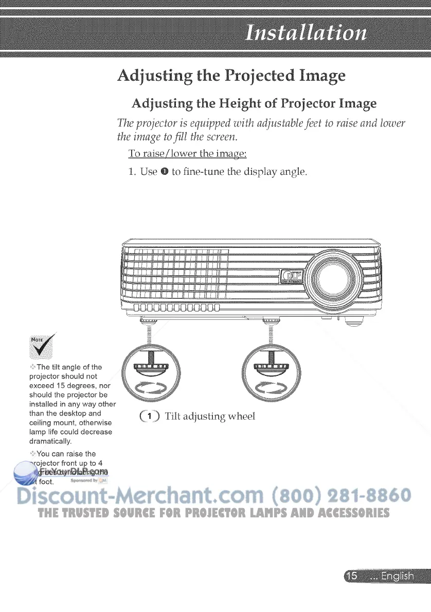 The projector is eq_lipped with adj_lstable feet to raise and Iower