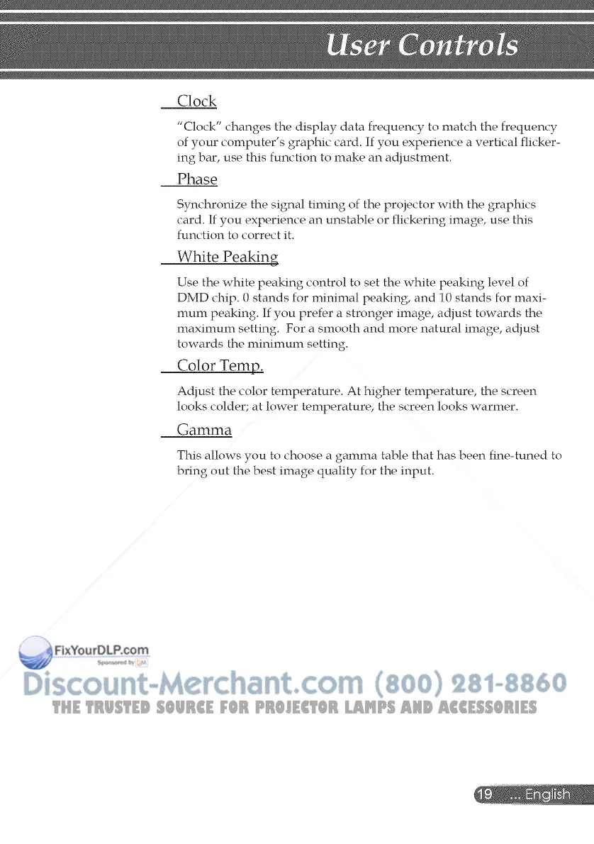 DMD chip. 0 stands for minimal peaking, and 10 stands for maxi-