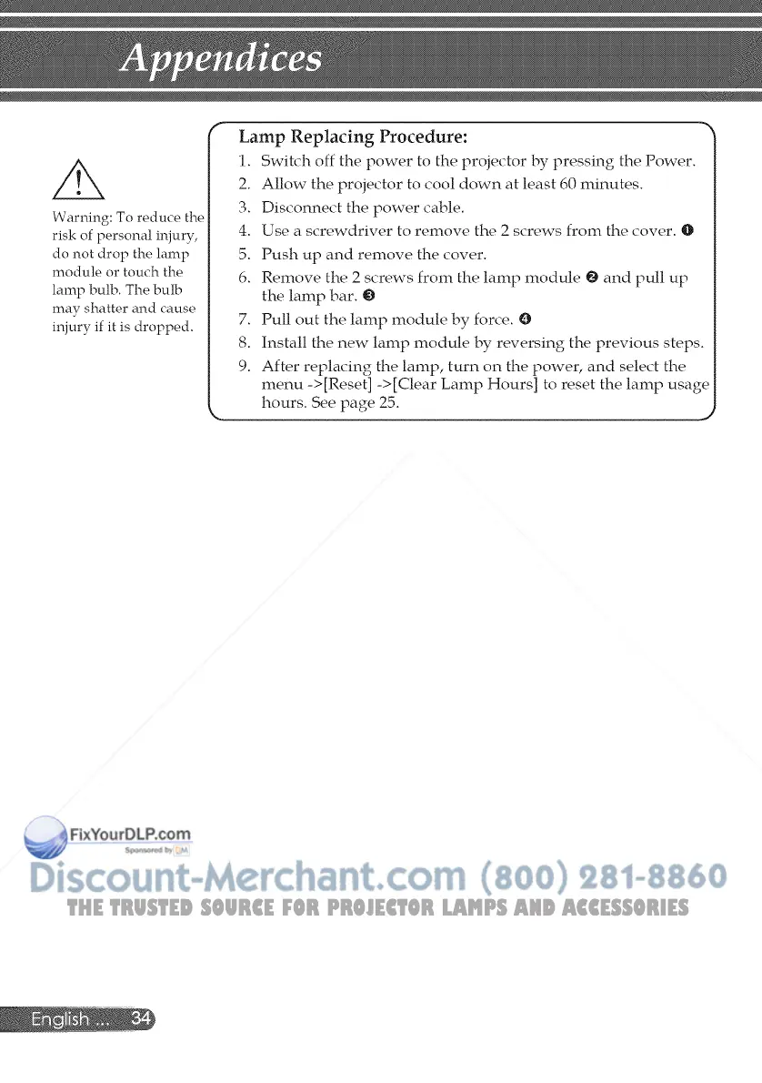 Lamp Replacing Procedure: