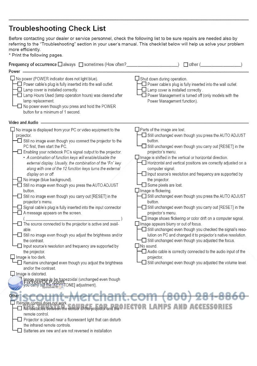 referring to the "Troubleshooting" section in your user's manual. This checklist below will help us solve your problem