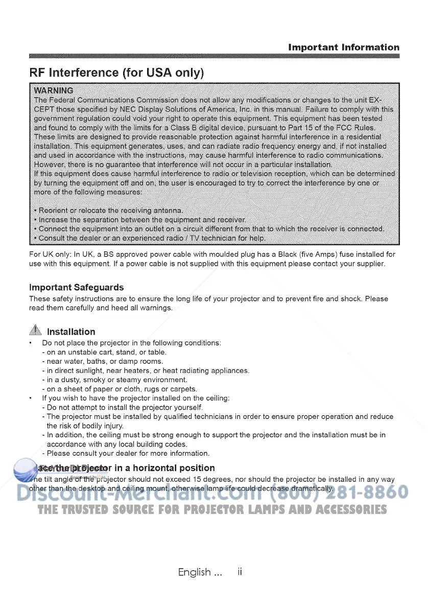 - Do not attempt to install the projector yourself.